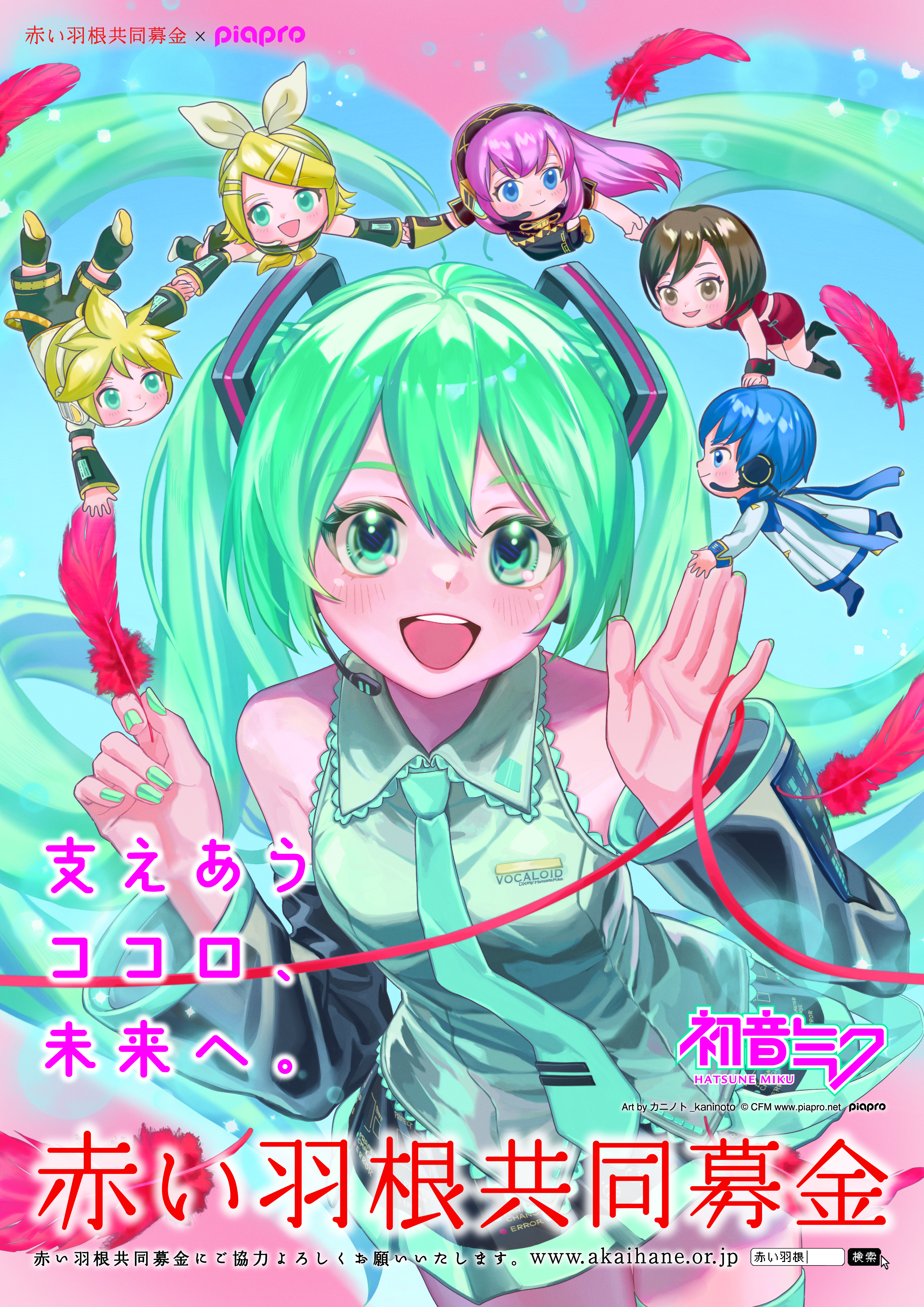 (社福)北海道共同募金会と札幌市共同募金委員会が、クリプトン・フューチャー・メディア(株)の協力を得て実施しているプロジェクト。クリエイターから、初音ミクを通じて赤い羽根共同募金を応援するイラストや楽曲を公募し、入賞作品はさまざまなメディアで広報・啓発活動に活用されます。